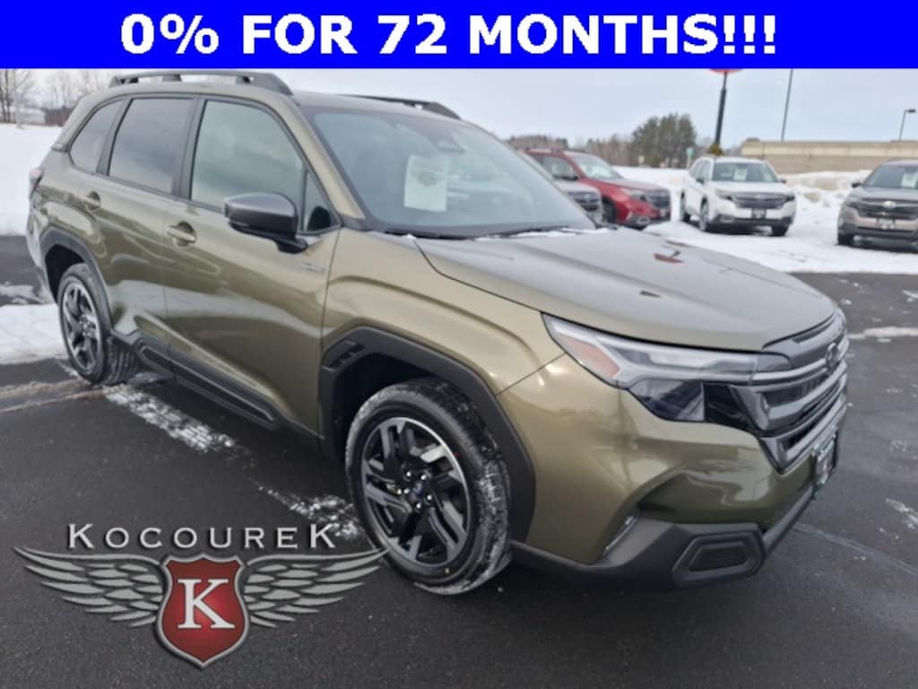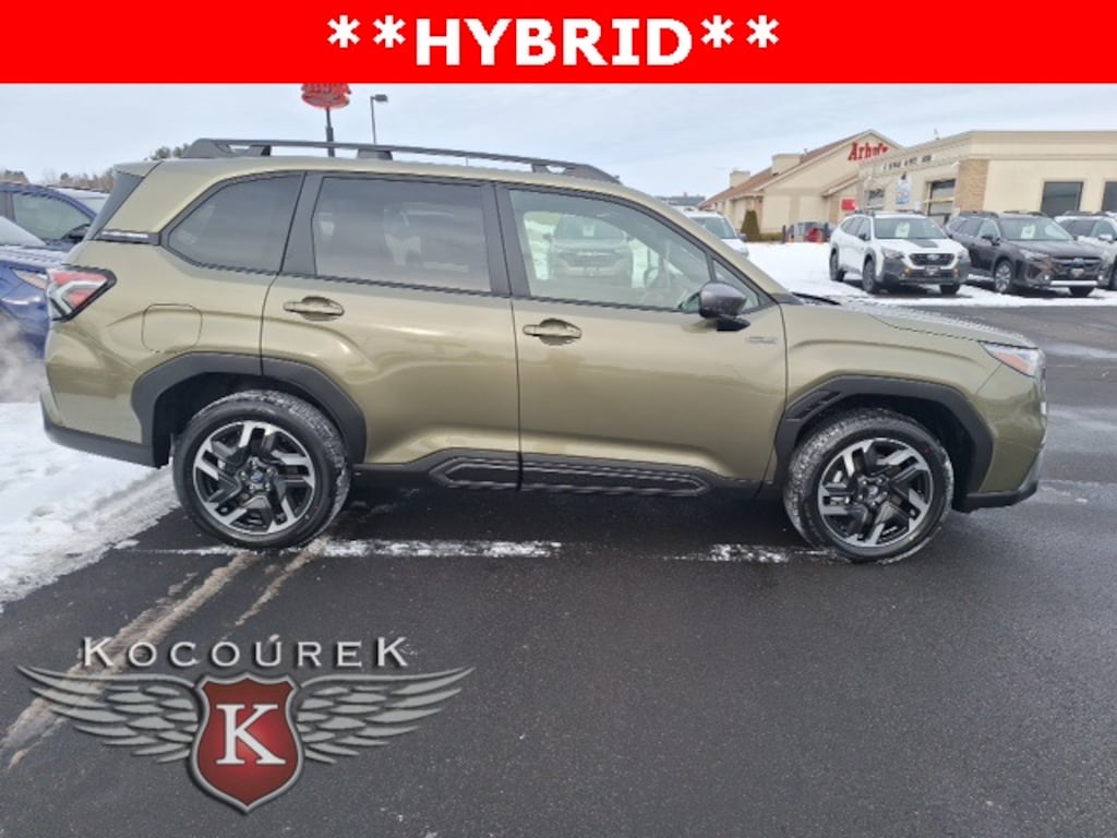 Autumn Green Metallic/Crystal Black Silica 2025 Subaru Forester Hybrid Limited AWD Lineartronic CVT 2.5L 4-Cylinder DOHC 16V 35/34 City/Highway MPG Visit www.kocoureksubaruofwausau.com, AWD / 4X4 / 4WD, Power Windows.