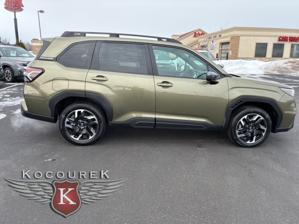 Green 2026 Subaru Forester Limited AWD Lineartronic CVT 2.5L 4-Cylinder DOHC 16V 26/33 City/Highway MPG Visit www.kocoureksubaruofwausau.com, AWD / 4X4 / 4WD, Auto-Dimming Exterior Mirror with Approach Light, Auto-Dimming Mirror with Compass and HomeLink, Cargo Net, Cargo Tray, Harman/Kardon Speaker System and Navigation and Reverse Automatic Braking, LED Upgrade, Limited Package, Premium/Limited Package, Radio: Subaru 11.6" Multimedia Navigation System, Rear Bumper Cover, Reverse Automatic Braking (RAB) System, Splash Guards.