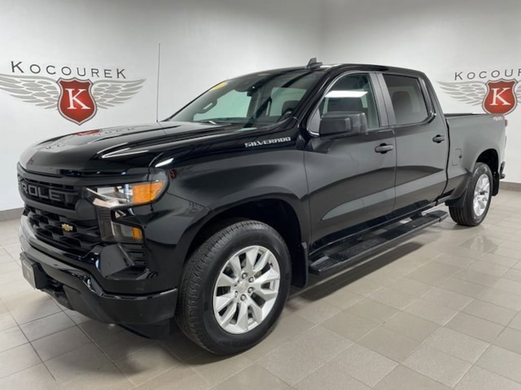 4WD / 4X4 / AWD / Four Wheel Drive, 8-Speed Automatic, 4WD, Jet Black w/Cloth Seat Trim, 10-Way Power Driver Seat w/Lumbar, 120-Volt Bed Mounted Power Outlet, 120-Volt Instrument Panel Power Outlet, 3.5 Monochromatic Display Driver Info Center, 4-Wheel Disc Brakes, 40/20/40 Front Split-Bench Seat, 6-Speaker Audio System, ABS brakes, Air Conditioning, Alloy wheels, AM/FM radio: SiriusXM, Apple CarPlay/Android Auto, Auto High-beam Headlights, Automatic Emergency Braking, Bluetooth® For Phone, Brake assist, Chevrolet Connected Access Capable, Cloth Seat Trim, Color-Keyed Carpeting Floor Covering, Compass, Custom Convenience Package, Custom Value Package, Delay-off headlights, Driver door bin, Driver vanity mirror, Dual front impact airbags, Dual front side impact airbags, Dual Rear USB Ports (Charge Only), Electric Rear-Window Defogger, Electrical Steering Column Lock, Electronic Cruise Control, Electronic Stability Control, EZ Lift Power Lock & Release Tailgate, Following Distance Indicator, Forward Collision Alert, Front anti-roll bar, Front Center Armrest w/Storage, Front Frame-Mounted Black Recovery Hooks, Front Pedestrian Braking, Front reading lights, Front wheel independent suspension, Fully automatic headlights, HD Rear Vision Camera, Heated door mirrors, High Capacity Suspension Package, Hitch Guidance, Illuminated entry, IntelliBeam Automatic High Beam On/Off, Lane Keep Assist w/Lane Departure Warning, LED Cargo Area Lighting, Low tire pressure warning, Manual Tilt Wheel Steering Column, Occupant sensing airbag, OnStar & Chevrolet Connected Services Capable, Outside temperature display, Overhead airbag, Overhead console, Panic alarm, Passenger vanity mirror, Power door mirrors, Power Front Windows w/Driver Express Up/Down, Power Front Windows w/Passenger Express Down, Power Rear Windows w/Express Down, Premium audio system: Chevrolet Infotainment 3, Radio data system, Radio: Chevrolet Infotainment 3 System, Rear 60/40 Folding Bench Seat (Folds Up), Rear reading lights, Rear window defroster, Remote Keyless Entry, Remote Vehicle Starter System, Security system, SiriusXM Radio, Speed-sensing steering, Split folding rear seat, Standard Tailgate, Tachometer, Theft Deterrent System (Unauthorized Entry), Traction control, Trailering Package, Variably intermittent wipers, Wheels: 20 x 9 Bright Silver Painted Aluminum, Wi-Fi Hot Spot Capable, Wireless Phone Projection.Priced below KBB Fair Purchase Price! Odometer is 6942 miles below market average!Please call one of our knowledgeable Sales Consultants with any questions you might have, or to verify listed options. Serving guests from Stevens Point, Plover, Wausau, Marathon, Portage, Langlade, Oneida, Taylor, Vilias, Wood, Clark, Lincoln, Waupaca or near me! 2023 Chevrolet Silverado 1500 Custom